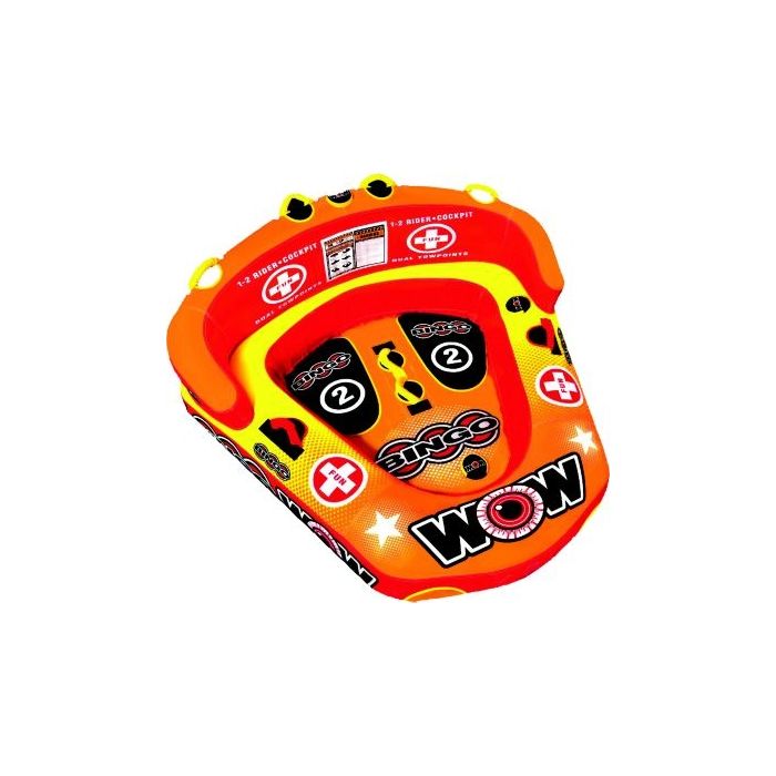 Introducing the WOW 141060 Bingo 2 Cockpit Tube, the ultimate towable for thrill-seekers! With its reinforced front and back tow points, this tube is built to withstand extreme rides and provide a secure experience for 1-2 riders.