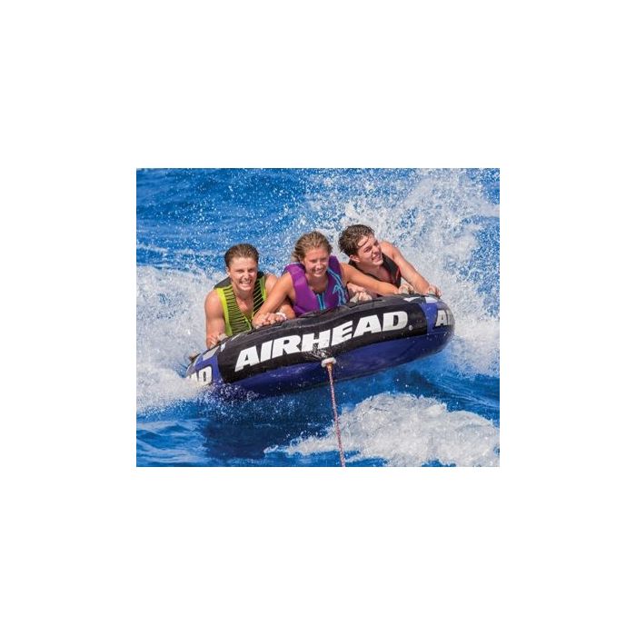 The Kwik-Tek Airhead AHSSL32 Inflatable 3 Person Rider Blue Super Slice® Deck Tube - the ultimate towable water toy.